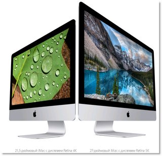 Каждая модель iMac создавалась, чтобы стать потрясающей настольной компьютерной системой. Самый лучший экран, высокопроизводительные процессоры, графическая система и накопители — всё в невероятно тонком бесшовном корпусе. Новый 21,5 дюймовый iMac с дисплеем Retina 4K продолжает эту традицию. Как и передовая 27-дюймовая модель с дисплеем 5K, он обеспечивает потрясающее качество изображения. Добавьте невероятное погружение в контент — и iMac снова на шаг впереди. Быстрый и мощный 27‑дюймовый iMac оснащён процессором Intel Core 6-го поколения и новейшими высокопроизводительными графическими процессорами AMD. А на 21,5‑дюймовый iMac установлены процессоры Intel Core 5-го поколения и улучшенная графика Intel Iris Pro Graphics. Обе модели обеспечивают потрясающее качество визуальных эффектов — на максимальной скорости.<br>