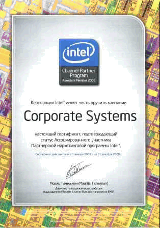 ООО "Корпоративные Системы" - Ассоциированный участник партнерской маркетинговой программы Intel.