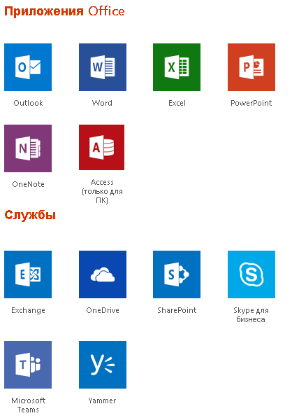* Классические версии приложений Office 2016 (Word, Excel, PowerPoint, Outlook, OneNote), а также Publisher и Access только для ПК