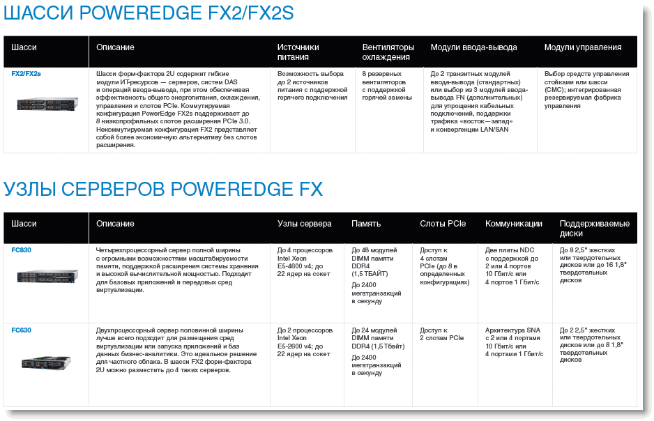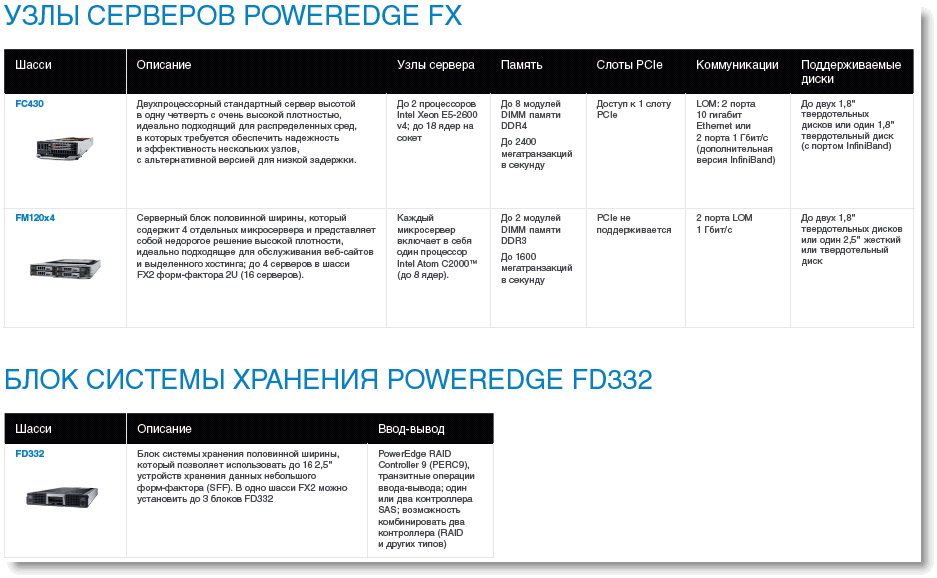 Таблицы сравнения серверов Dell EMC PowerEdge FX