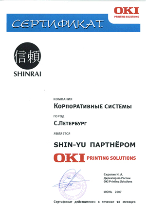 Компания Корпоративные Системы подтвердила свое партнерство с компанией ОКИ новым статусом SHIN-YU ПАРТНЕР