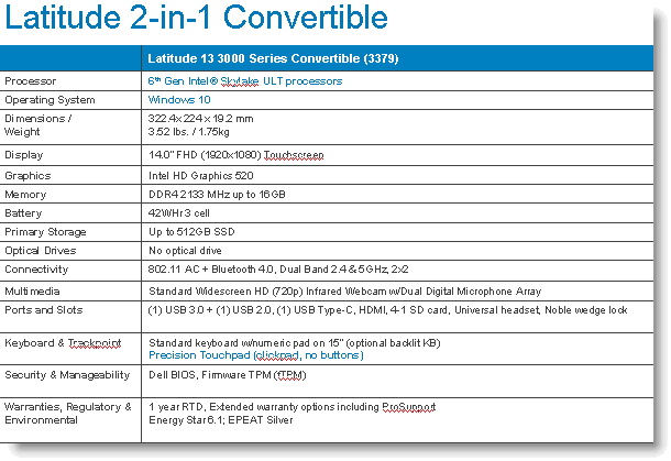 Integrated Ethernet 10/100/1000 (GbE); No WWAN DW 1810 1x1 802.11ac (BT+WLAN combo)