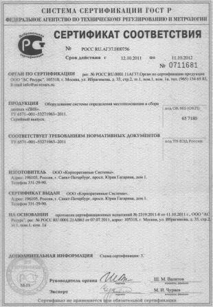 Компания «Корпоративные Системы» успешно провела сертификацию оборудования системы определения местоположения и сбора данных «ZBLS» в органах государственного контроля и экспертизы.