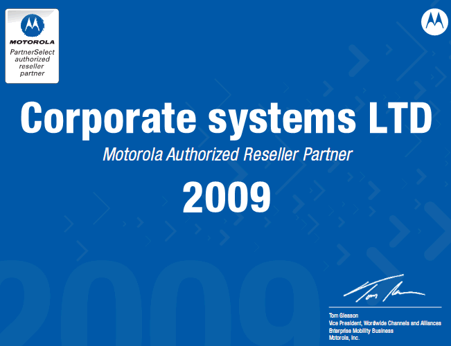 Статус Authorized Reseller Partner 2009 - свидетельство длительного сотрудничества компаний Motorola и ООО "Корпоративные Системы".