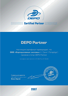 Компания Корпоративные Системы получила статус Авторизованного партнера DEPO Computers - одного из крупнейших разработчиков и производителей компьютерных систем в России, входящего в Центр Электронного Бизнеса "ДИЛАЙН".