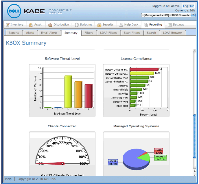Всю продукцию KACE можно сравнить с "черным ящиком". Эти системы поставляются в 19 " дюймовую серверную стойку и за исключением начальной настройки IP сети через консоль входа, все коммуникации с продуктом осуществляется с помощью веб-интерфейса.